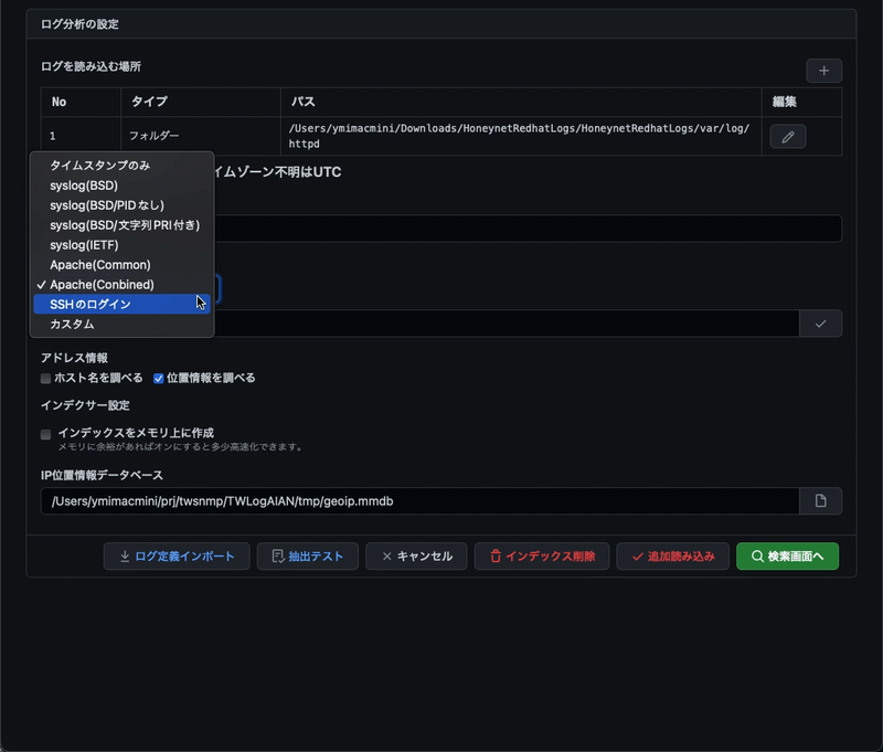 Specifies the type of log to load.The types of logs that TWLogAIAN knows about how to extract information include those listed on the right.Even with syslog alone, there are old BSD formats and new IETF formats that support time zones and digits subseconds.If you want to set it in detail yourself, select Custom.If you select automatic judgment, you can make a judgment automatically to some extent.