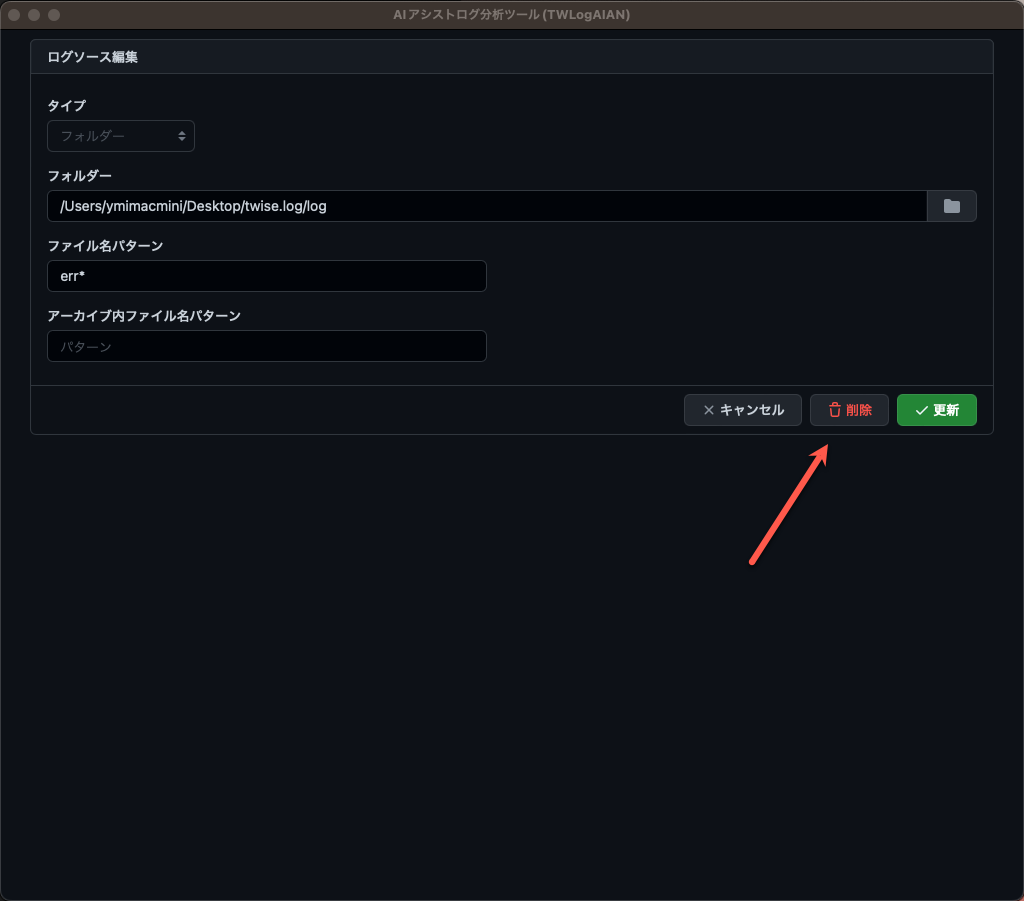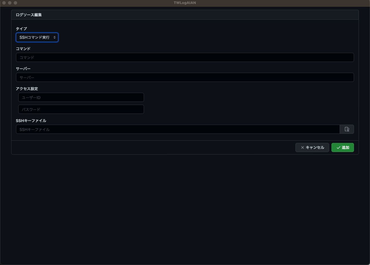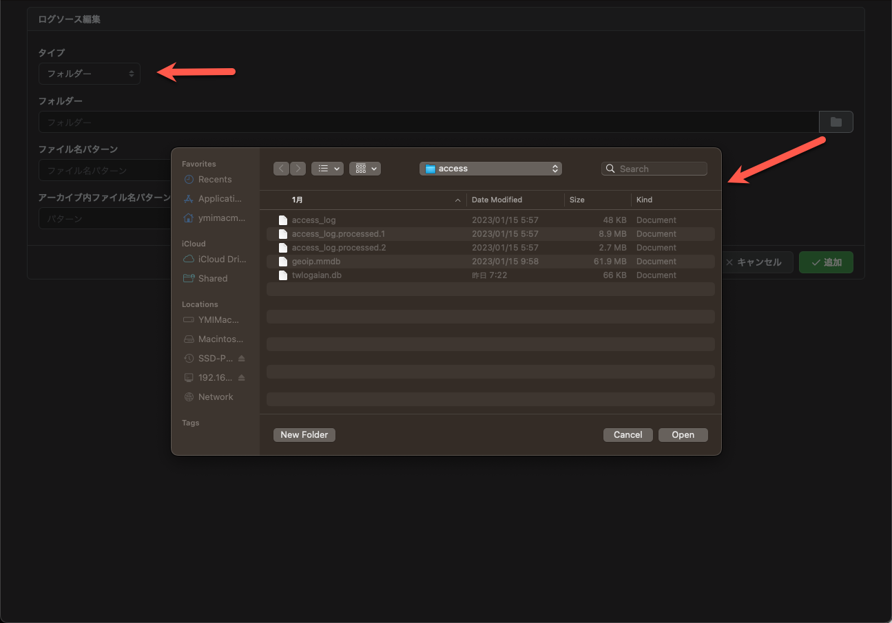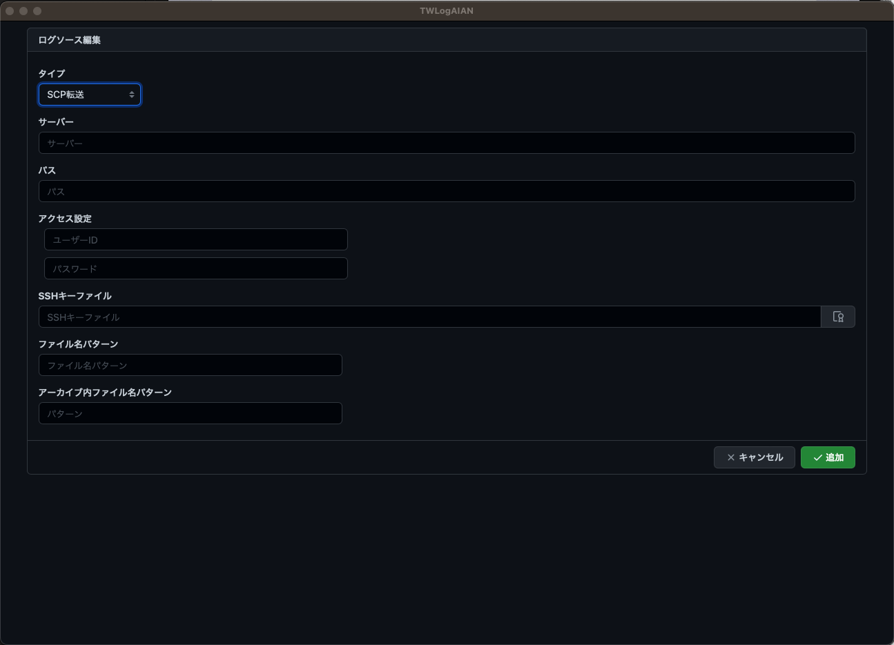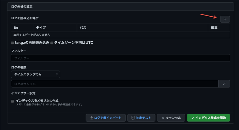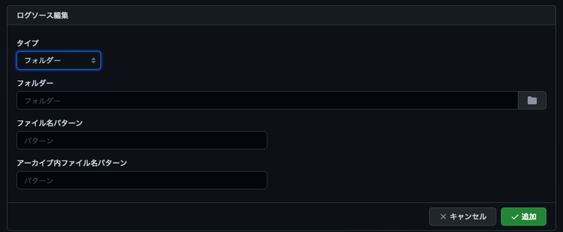 To specify where to load the log, click the <+> button in the “Log Loading Location” list on the Log Analysis Settings screen.The editing screen for the source (source) of the log will be displayed.