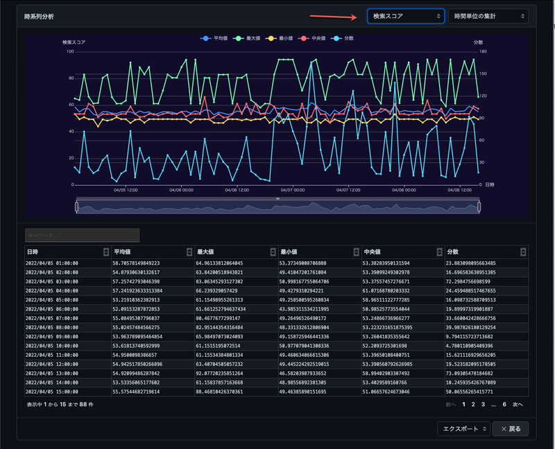- Time unit aggregation The extracted numerical data is displayed in aggregation by time.You can view the mean, median, variance, maximum, and minimum values.