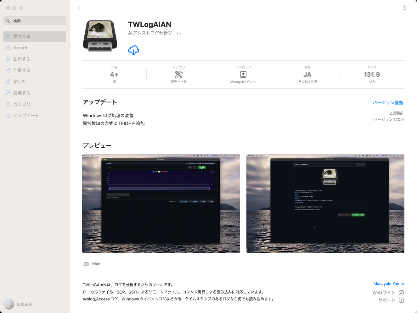 Windows版のMSI形式のインストラーファイルTWLogAIAN.msiかMacOS版のMacOS版のTWLogAIAN.pkgをダウンロードしてください。