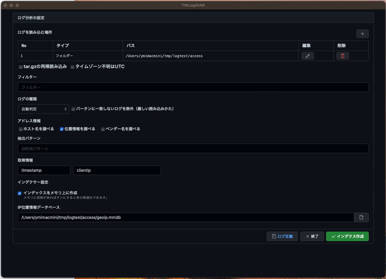 - ログの読み込み場所の設定